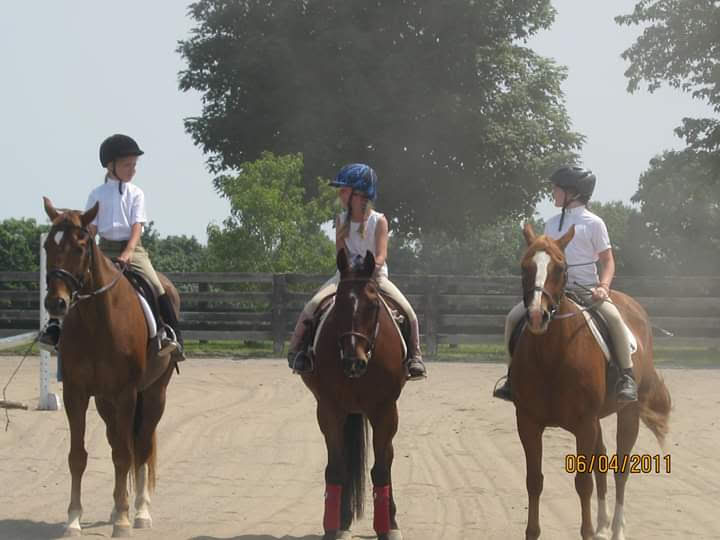 My first couple of lessons were private lessons but then I quickly progressed to group lessons which I remember with very fond memories. My favorite excericse that I remember was the clock excercise where we were all on a circle and were given different tasks to do in the different sections of the “clock” we were riding around. My worst and probably funniest memory there is when I was riding around and I forgot to check my girth and my saddle slid over with me. I remember being scared and then laughing when I hit the ground. I guess that is my first time “falling off” but I really don’t count it because I droped close to two feet to the ground. Not really the story of a spook or becomeing unbalanced and falling off the very top of the horse. My favorite memory from my early lessons were of it being a very cold winter and after we were done with our lesson, we got to take the saddles off and I got to experience my very first time riding bare back.